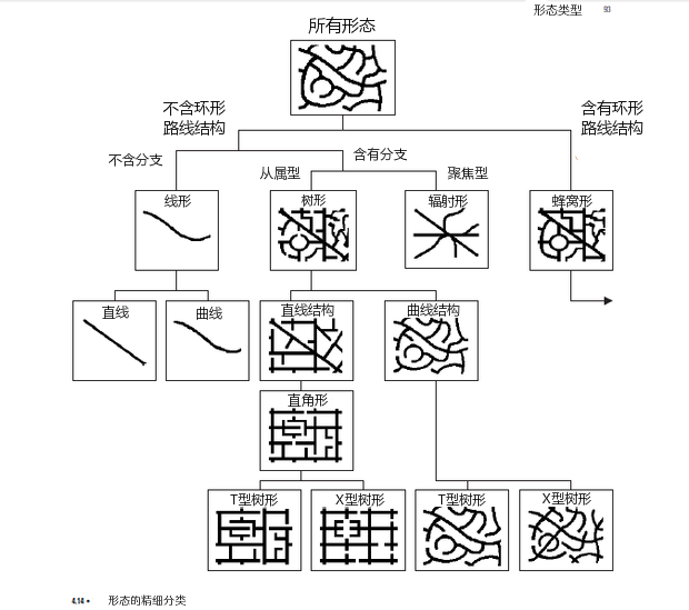 另一些分類法模式側(cè)重于城市街道的形態(tài)學,馬歇爾在《街道與形態(tài)》里對此有詳細論述: