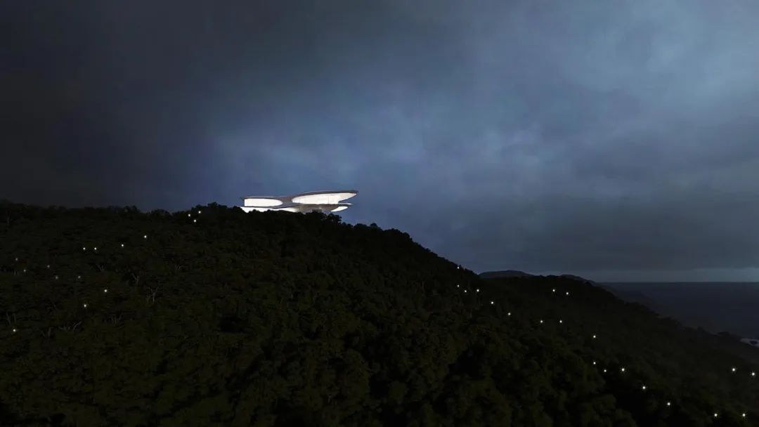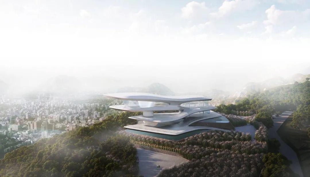 本次設計項目——云海驛站位于鹽田區三洲田森林公園核心區的海拔 378m 馬巒山山頂,總占地800平方米,是鹽田區半山公園帶重要景觀節點。項目背靠三洲塘水庫,直面大鵬灣,擁有 360°一覽山海城的獨特視景,是馬巒山絕佳的觀景瞭望之地。