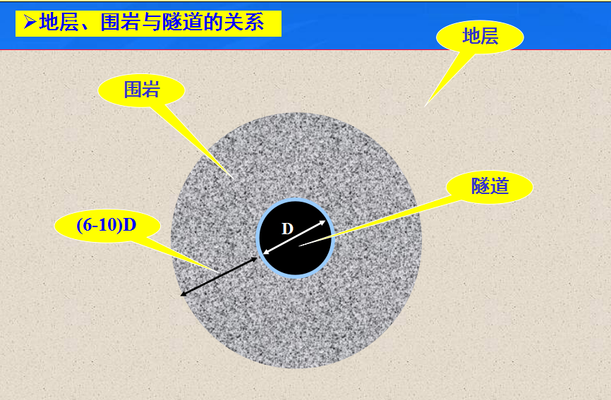 圍巖是直接影響隧道穩定性的因素,圍巖的好壞直接影響隧道的設計施工及造價,約為6~10倍隧道直徑,圍巖既指巖體也指土體。