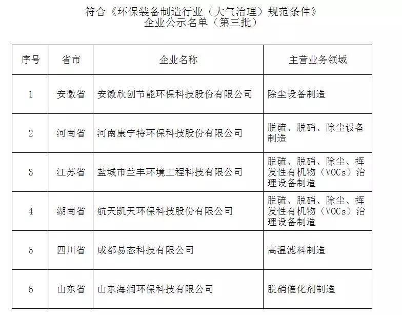 附件:符合《環保裝備制造行業(大氣治理)規范條件》企業公示名單(第三批)