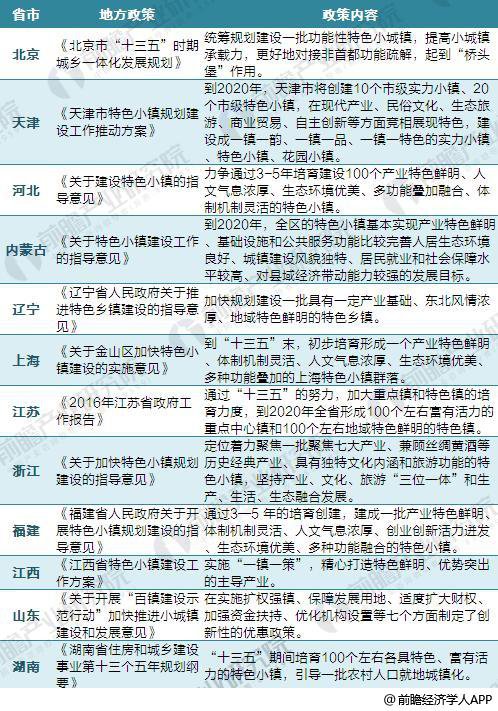 2018 年全國 31 省市特色小鎮最新政策及建設規劃匯總