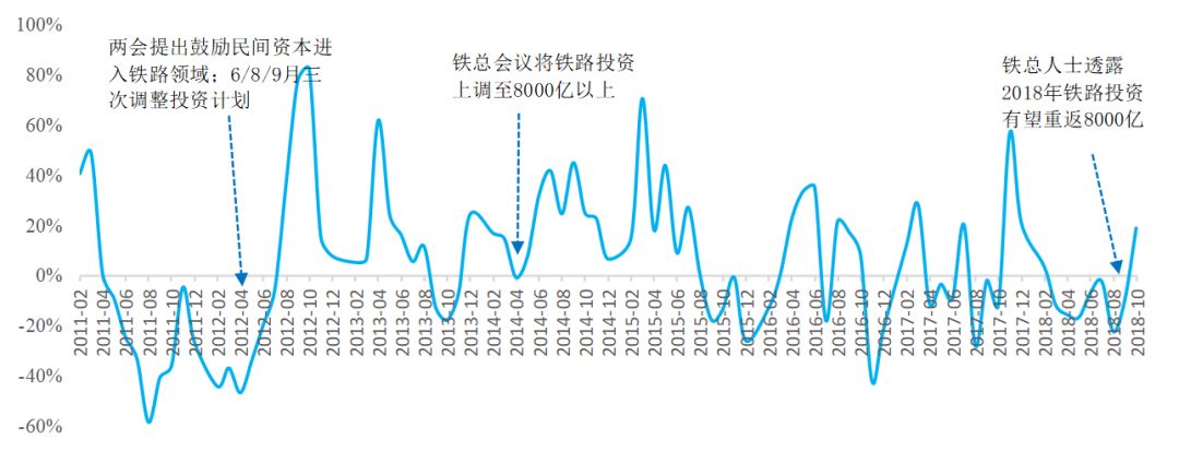 歷次修鐵路投資規劃后,鐵路投資增速均快速上行,因此本次鐵路投資增速有望繼續攀升: