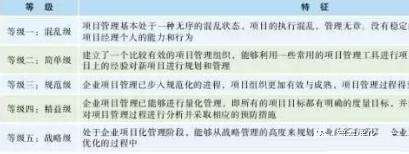 設計院向工程公司轉(zhuǎn)型升級,需要提升管理能力,如項目管理能力、商務和法律能力、專業(yè)采購和分包管理能力、信息化建設和運用能力等,這都是擺在傳統(tǒng)設計院面前的新課題。特別是項目管理能力的打造,是能否實現(xiàn)轉(zhuǎn)型的關鍵,只有真正具備了較為完善的項目管理能力,企業(yè)才能以工程公司模式順暢運作。根據(jù)項目管理理論,企業(yè)的項目管理能力可分為5個等級,見表1。