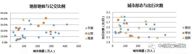 研究發(fā)現(xiàn),除了城市規(guī)模,城市之間的差異體現(xiàn)在許多方面,如城市地理環(huán)境、空間形態(tài)、城市職能、區(qū)位等,這些差異都或多或少地帶來交通特征的差異。尤其是改革開放以來,各城市發(fā)展的速度差異導(dǎo)致發(fā)展階段的差異。城市間的差異直接帶來經(jīng)濟(jì)水平、存量地區(qū)規(guī)模、機(jī)動(dòng)車擁有、交通設(shè)施水平等的分化,導(dǎo)致不同的出行特征,包括出行距離分布、交通結(jié)構(gòu)、出行目的、時(shí)間分布等。這種差異性不僅體現(xiàn)在城市之間,還體現(xiàn)在城市內(nèi)部不同功能、強(qiáng)度、發(fā)展階段的地區(qū)之間。