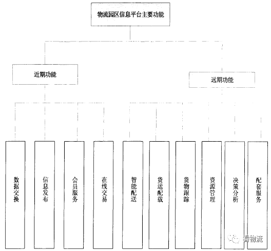 根據(jù)物流園區(qū)的作業(yè)、管理內(nèi)容、運(yùn)作需要等方面來(lái)看,物流園區(qū)信息平臺(tái)應(yīng)具備以下的一些主要功能,如圖所示 按照分步實(shí)施,循序漸進(jìn)的原則,把其分為近期功能和遠(yuǎn)期功能兩部分 先建設(shè)近期功能項(xiàng)目,再建設(shè)遠(yuǎn)期功能項(xiàng)目這些項(xiàng)目涉及現(xiàn)代物流寬帶網(wǎng)絡(luò)系統(tǒng)、物流業(yè)務(wù)信息系統(tǒng)、現(xiàn)代物流園區(qū)內(nèi)部管理信息服務(wù)系統(tǒng)及商務(wù)信息系統(tǒng) .