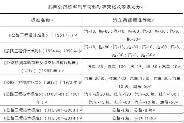 我國公路橋梁汽車荷載標準變化及等級劃分