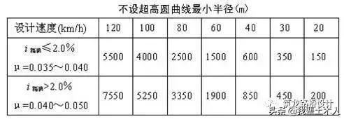 是各級公路采用允許超高ih和橫向摩阻φh下保證安全行車的最小允許半徑。