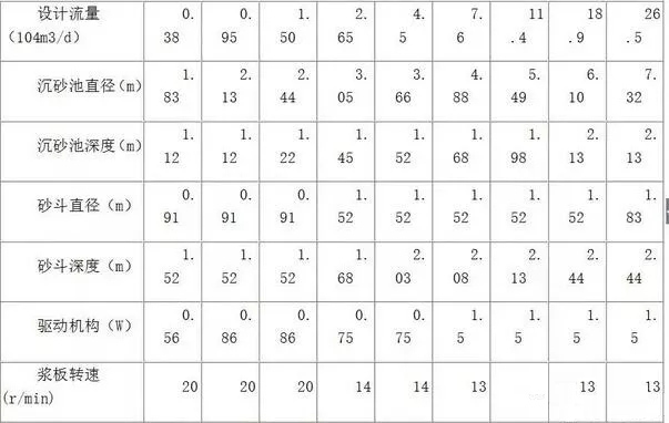 2)城市污水沉砂量可按106m3污水沉砂15-30m3計算,其含水率為60%,其密度為1500kg/m3;
