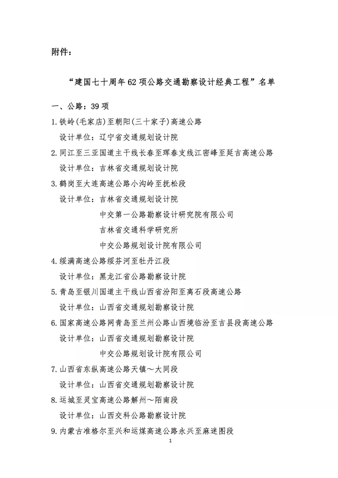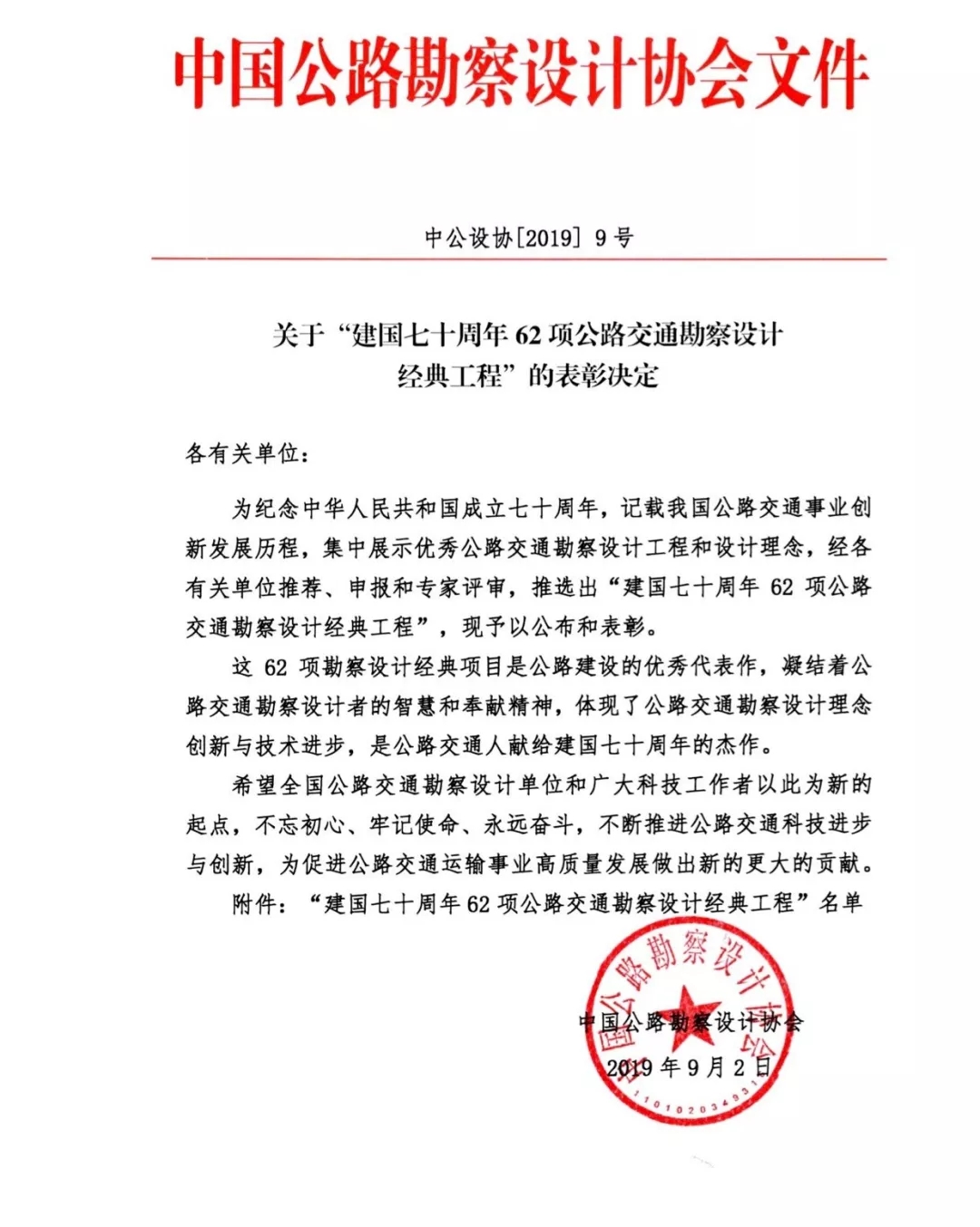 中國公路勘察設(shè)計協(xié)會表彰62項(xiàng)“建國七十周年公路交通勘察設(shè)計經(jīng)典工程”