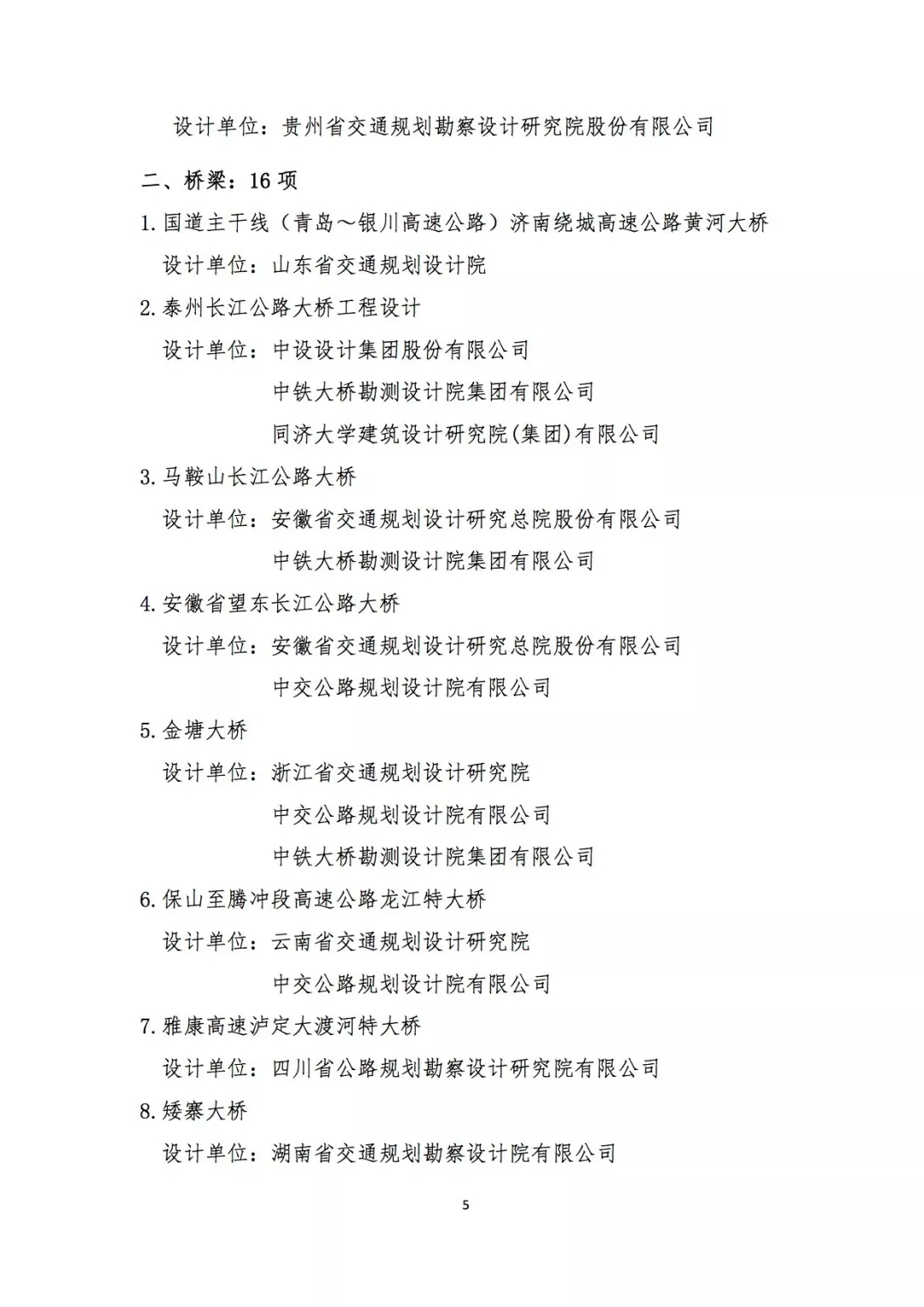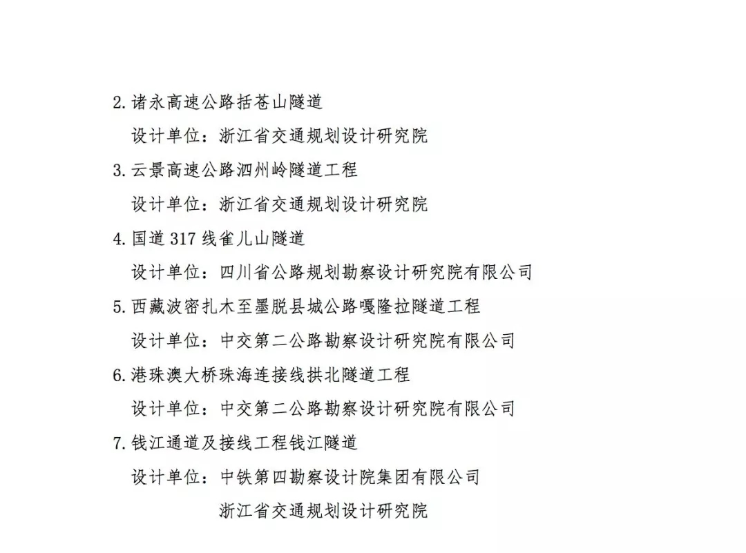 本次獲獎的62個項(xiàng)目中,公路工程39項(xiàng),橋梁工程16項(xiàng),隧道工程7項(xiàng)。其中中交公路規(guī)劃設(shè)計院有限公司參與的14個項(xiàng)目獲獎。
