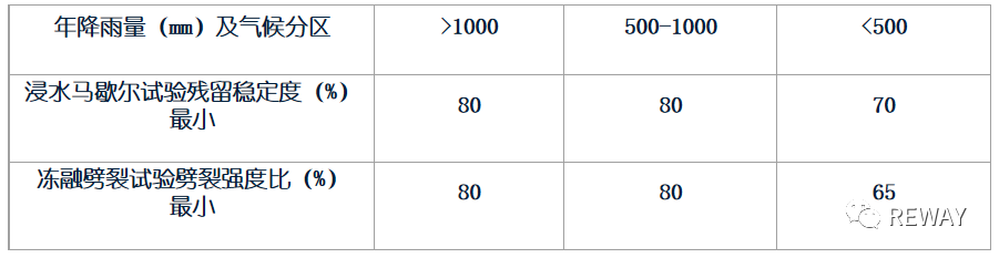 注:對于有條件的地方,為了減少凍融劈裂試驗因空隙變異而造成的試驗結果的偏差??刹捎每刂圃嚰尚涂障堵实腁ASHTOT283方法,指標同凍融劈裂試驗要求。