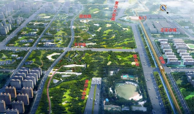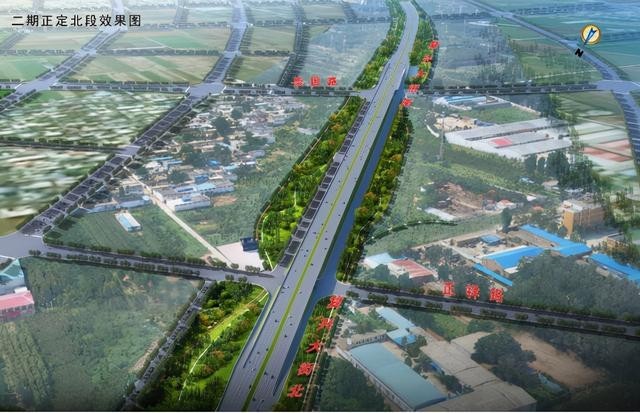 復興大街市政化改造工程,本次改造按照設計速度100公里/小時、雙向8車道城市快速路標準進行設計建設,標準路基寬度34.5米。全線新建大橋13座,總長4436米,其中滹沱河景觀特大橋2300米,泊水公園景觀大橋605米;新建地下隧道3座,總長5.02公里,其中正定古城段隧道2.51公里,白佛隧道1.23公里,學苑路隧道1.28公里;全線共設置互通立交11座(改造現有互通立交3座、新建互通立交4座、預留互通立交4座),增設出入口匝道16對(預留1對)。同時,結合區域交通需求,在滹沱河北大堤至月牙路段與和平路至南二環段局部增設輔路系統,輔路總長約5.3公里,按照設計速度50公里/小時、雙向四車道的城市主干路標準建設,兩側設置人非慢行系統。