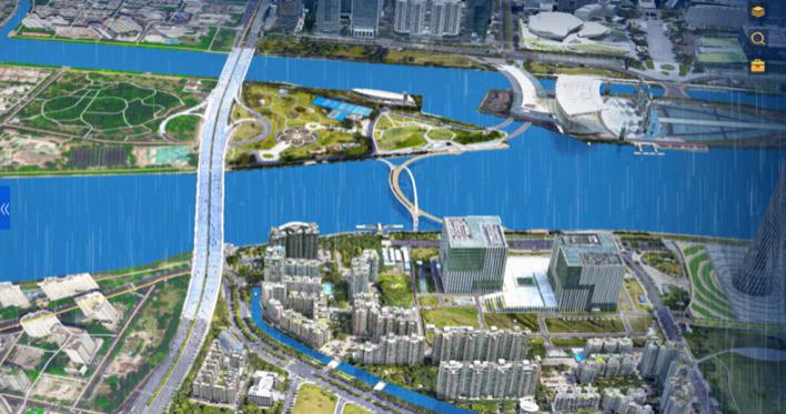 " 例如,通過 CIM 模擬城市發(fā)生降雨,可以結(jié)合降雨強度和地形地貌、以及河道、管線道路上裝的各種傳感器實現(xiàn)對特定區(qū)域的不同淹沒深度所影響的范圍進行模擬分析,提供防澇預警和決策支持。"