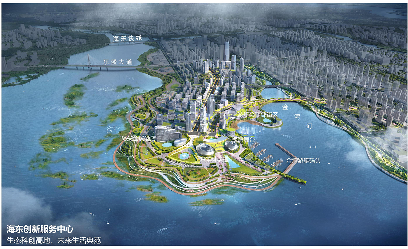 打造海東新區(qū)的生態(tài)創(chuàng)新高地,樹立一灣兩岸創(chuàng)新生活典范。延續(xù)歷版規(guī)劃中的生態(tài)內(nèi)灣,同時將生態(tài)岸線延伸至北岸,形成龍王灣環(huán)島濕地公園。濱海一線實施低強度開發(fā),內(nèi)陸開發(fā)強度梯度式提升,將商娛、科普功能融入濱海濕地公園,提升濱海活力。