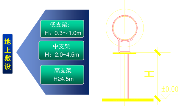 城鎮(zhèn)街道上和居住區(qū)內(nèi)的管網(wǎng)宜采用地下敷設(shè),地下敷設(shè)困難時,可采用地上敷設(shè),但應注意美觀。