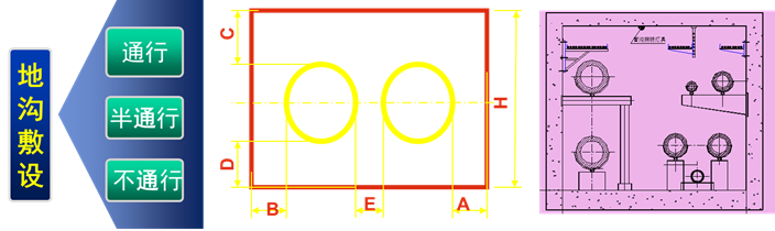 管溝敷設(shè)首選不通行管溝敷設(shè);穿越不允許開挖檢修的地段時,采用通行管溝敷設(shè);通行管溝困難時,采用半通行管溝敷設(shè)。