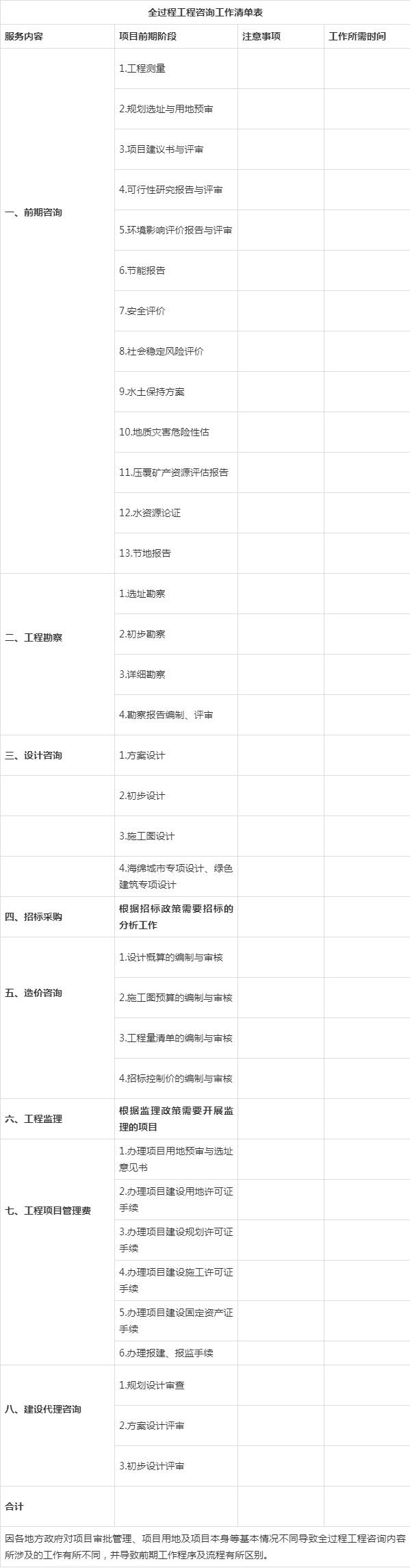 不難看出,以往的工程咨詢更多是關(guān)注項目建設(shè)準(zhǔn)備期(前期),而全過程工程咨詢還要求關(guān)注項目建設(shè)實施期及竣工期(后期),服務(wù)貫穿整個建設(shè)項目全生命周期(全過程)。