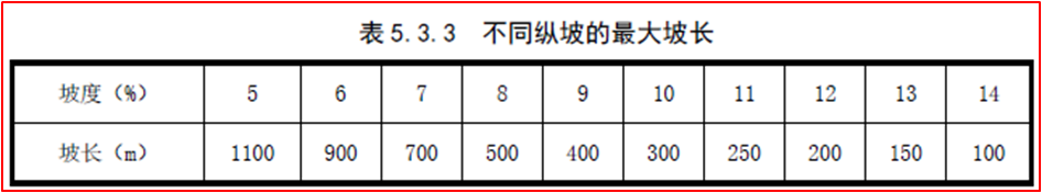 《規范》表5.3.3 不同縱坡的最大坡長