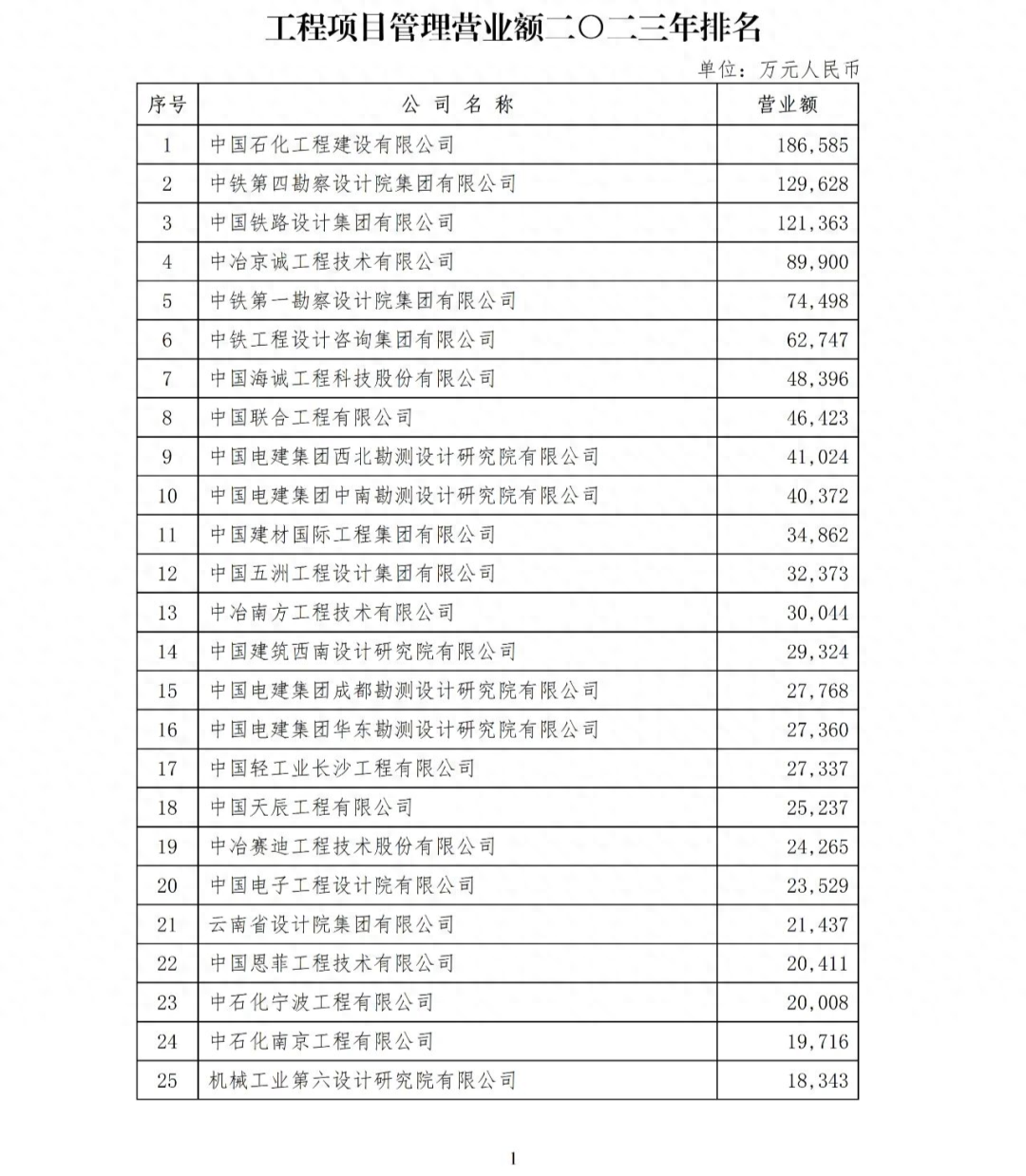 1.工程項(xiàng)目管理營業(yè)額二〇二三年排名