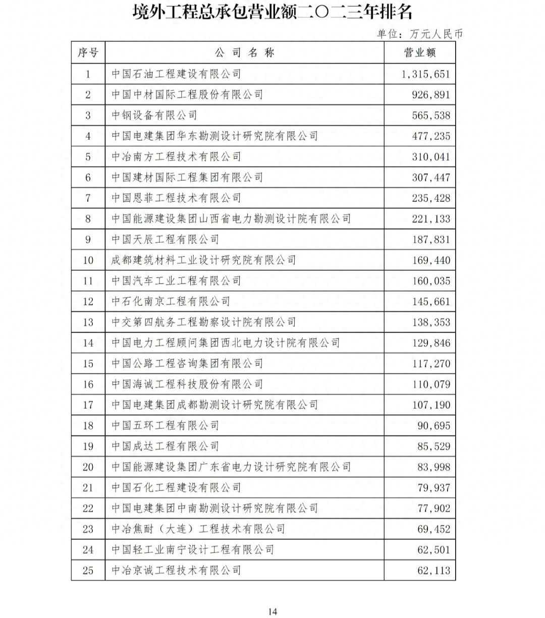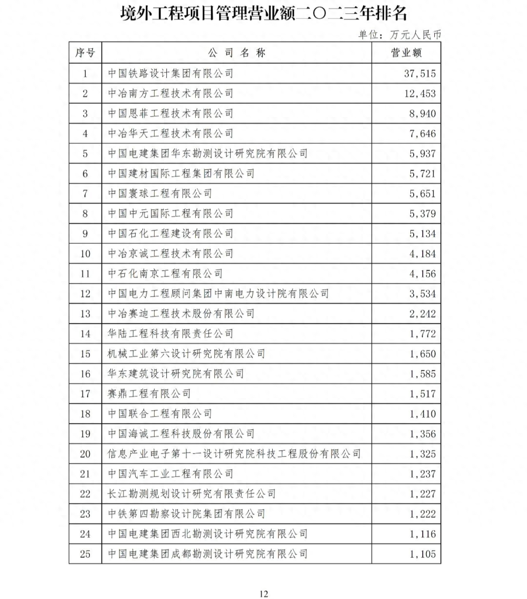 勘察設(shè)計(jì)企業(yè)工程項(xiàng)目管理和工程總承包營業(yè)額2023年排名出爐