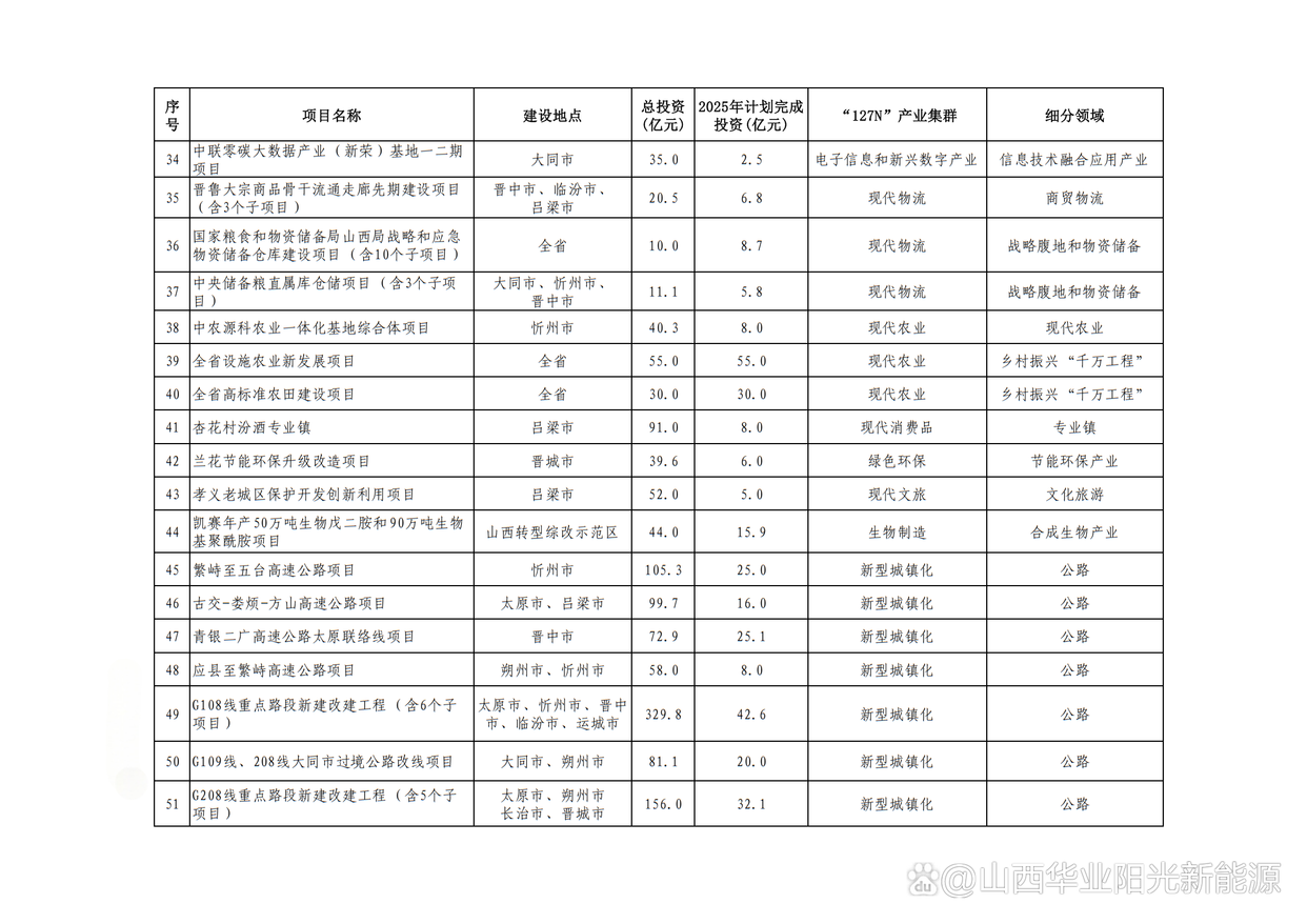 2.山西晉北新能源基地項目(含湖東“上大壓小”、同熱三期、風電光伏3個子項目),總投資553億元,年度計劃投資169.8億元,建設地點大同市。