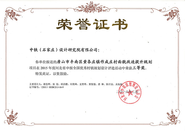該項目于2015年12月榮獲由河北小城鎮規劃建設協會頒發的規劃三等獎。